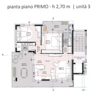 3 locali ultimo piano con ampio soggiorno con zona cucina entrambi con accesso al terrazzo coperto e vivibile di 30 mq, 2 camere da letto matrimoniali, 2 bagni entrambi finestrati, ripostiglio e possibilità box doppio al piano interrato (a parte dal prezzo di vendita).